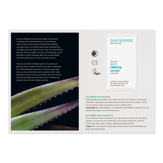 Sampel Santaverde Aloe Vera Pure refining serum fragrance free, lõhnavaba seerum probleemsele ja vistrikulisele nahale